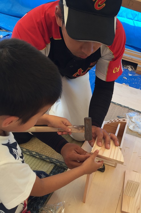 子供工作教室も盛況! 木工作業を通じて、建築に興味を持ってくれると